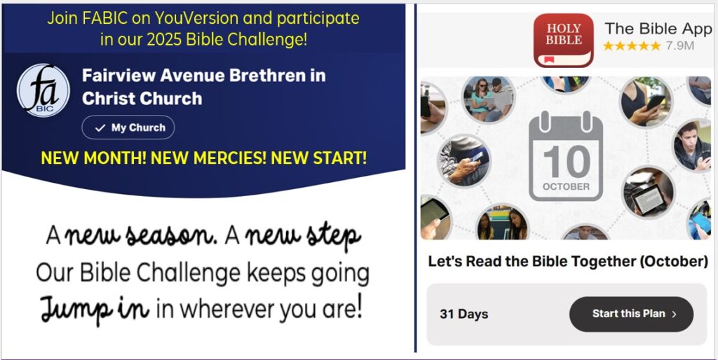 Last year, we launched a Bible Reading Challenge through our FABIC Church YouVersion account, encouraging everyone to read the entire Bible in a year. Some of us completed the challenge, while others faced difficulties or discovered it too late to join. This year, we’re changing things up! We’ve selected a…